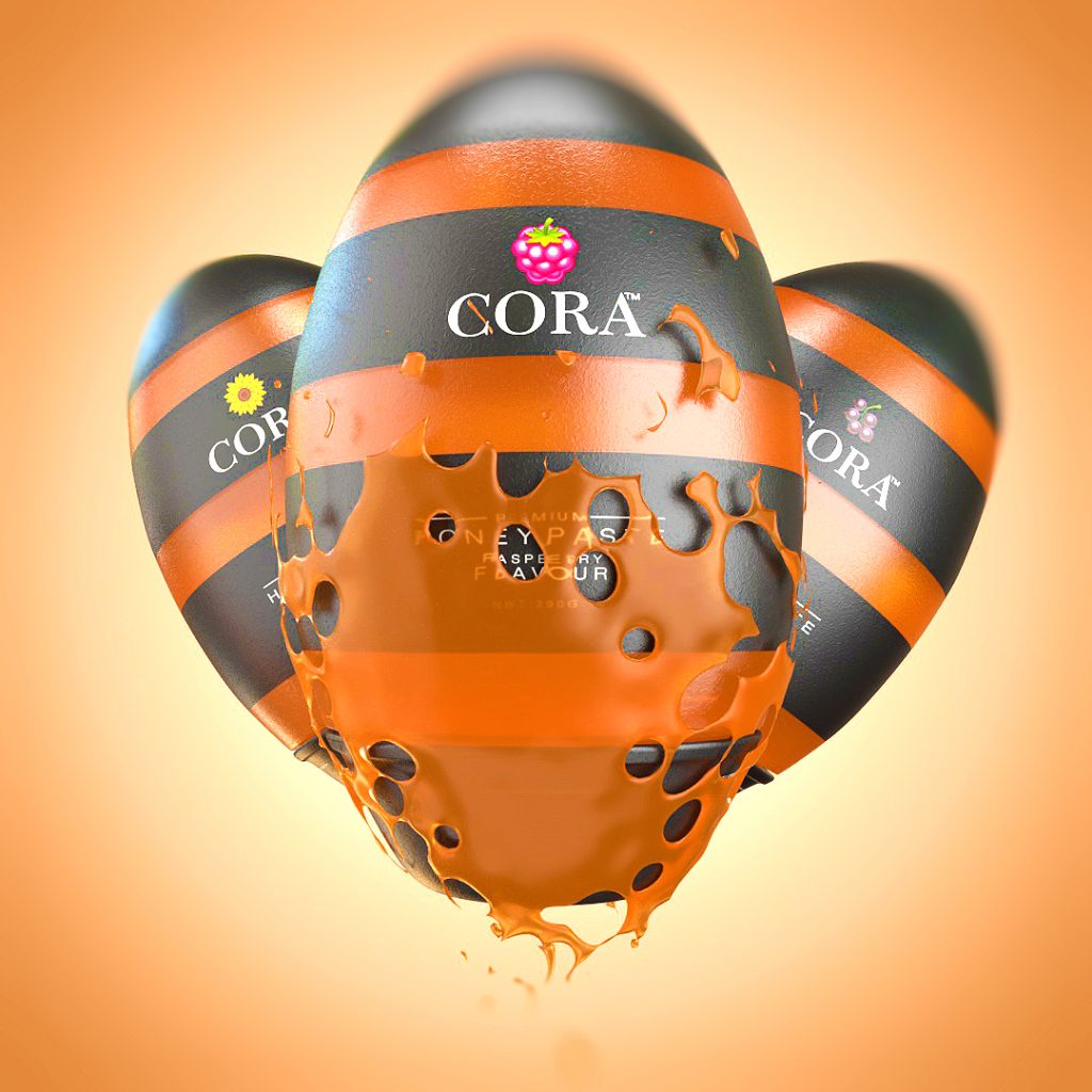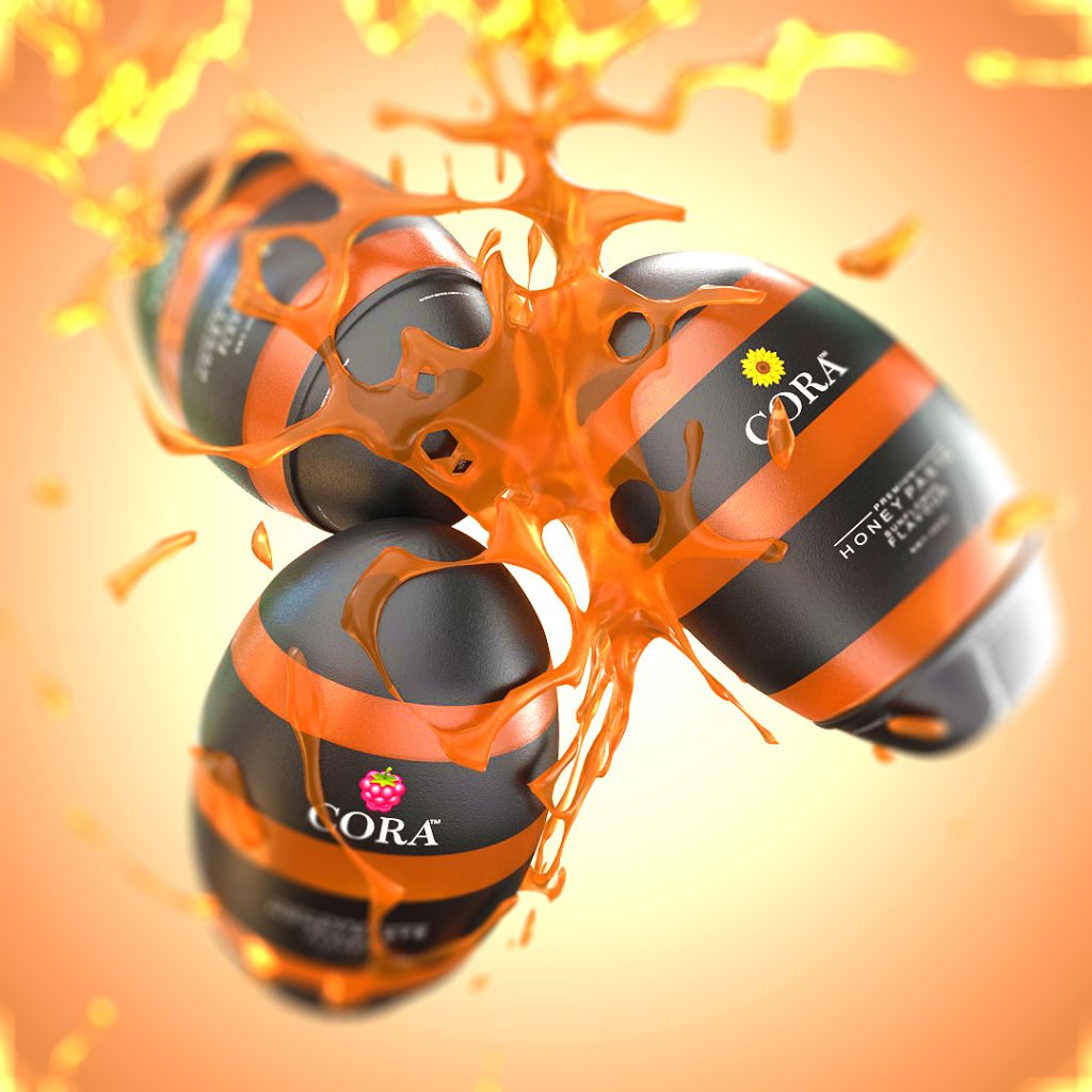 To refresh the consumer experience and reintroduce Cora Honey with a bold, memorable identity, we turned to nature’s original designer; the bee. In our design exploration, we found inspiration in the bee's abdomen, its iconic black stripes and organic structure. The result is a packaging form that not only mirrors the elegance and anatomy of the bee but also embodies control, excitement, satisfaction, and luxury.