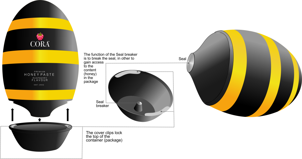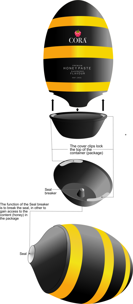 Honey is one out of a plethora of interesting products that have some untapped features to be further explored. Some buyers of some honey brands have made their concerns known through feedbacks about how less interesting, boring and generic in form the Packaging of some honey brands are and which has also lead to counterfeiting. To solve these problems of counterfeiting, the obvious answer was to create something exciting, a package that gives consumers complete excitement for control, a product that gives the consumers complete satisfaction and experience, finally a package that gives consumers a sense of luxury.