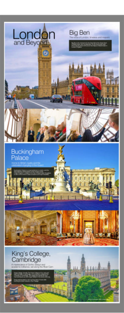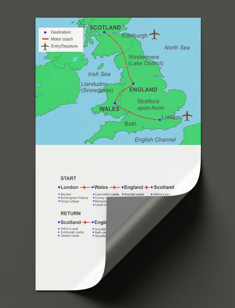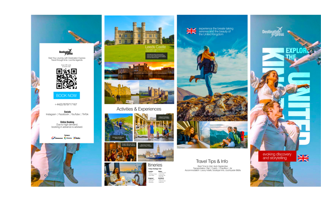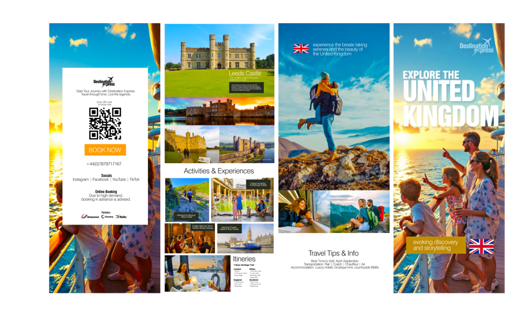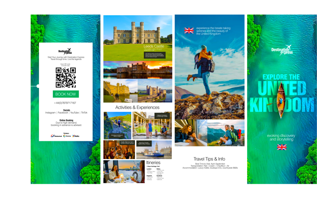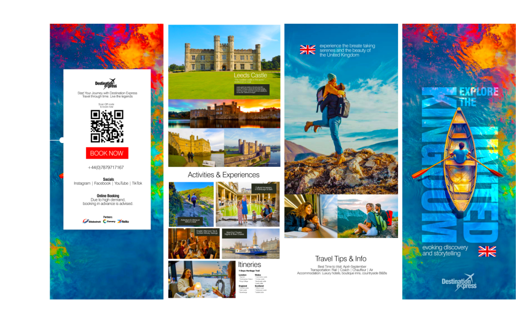 Destination Express, a trusted tour and guide company, curates tailored travel experiences organising trips, providing insightful history and cultural context, and ensuring smooth logistics. Their next step is to create engaging postcards, brochures, and maps that not only showcase United Kingdom’s attractions but also strengthen their brand identity as the go-to choice for guided tours. These materials will serve as both souvenirs and practical guides, ensuring visitors leave with memories that last and information that empowers them to explore with confidence.
